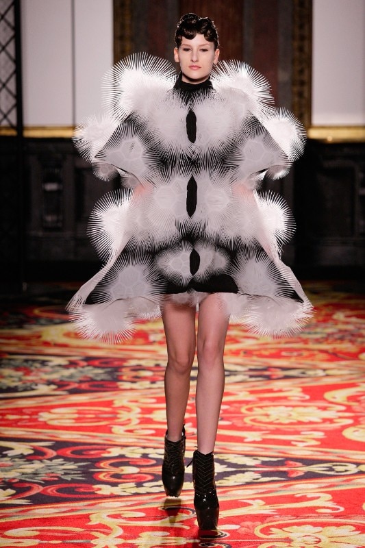 The first investigators of the relation between materials, body and technology were two great fashion designers: Issey Miyake with his A-POC system (A Piece of Cloth, 1997), a combination of fashion and engineering, and Hussein Chalayan. Both have been constructing an original relation between clothing and body that alludes to a world where technology has a central role, even when that technology is hidden. As we are immersed in digital technology, its mixture with the biological world builds a space for research where hybridisation is produced.