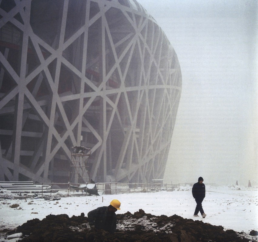 Img.7 Workers outside the Beijing National Stadium by Herzog & De Meuron for the Olympics, 2008