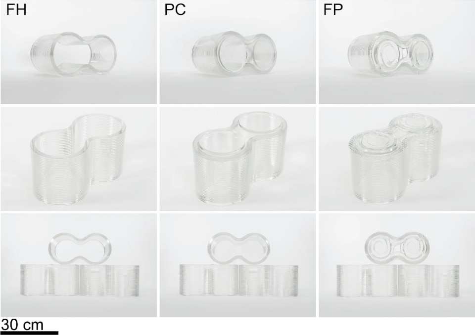 A group of MIT engineers is continuing the experimental use of 3D printing in construction, but using recycled glass this time. Referred to by researchers at the American institute as “reconfigurable masonry,” these bricks were made using a custom machine that can 3D print molten glass developed by MIT's New York spinoff Evenline. The equipment squeezes liquefied glass and stacks it in multiple layers, forming the shape of a figure eight.