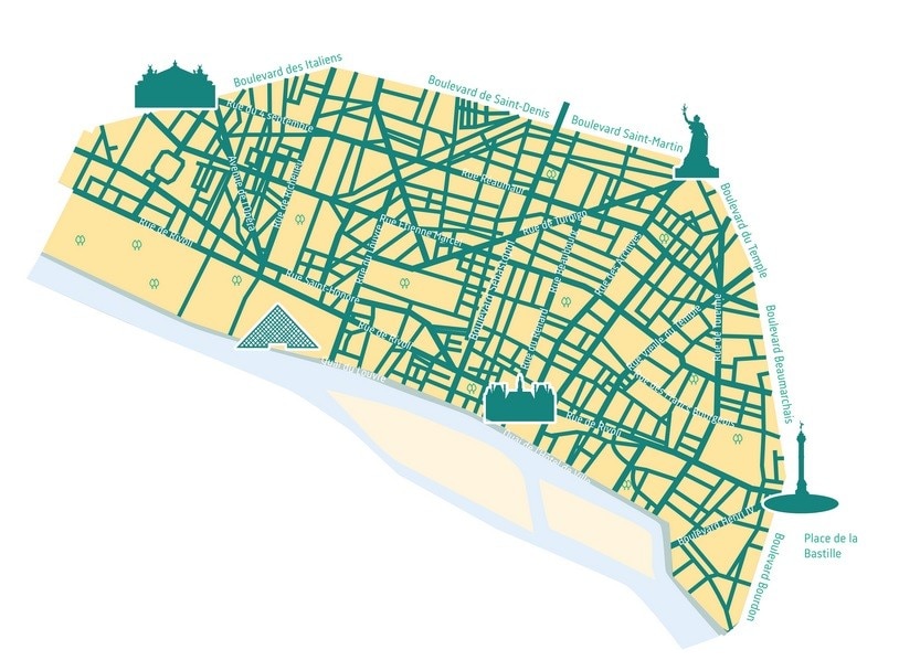 Most of the city's most dramatic progress in taming traffic has taken the form of infrastructure changes, as road space for cars in the heart of the city has been steadily eliminated. Several major squares and intersections have been transformed, replacing vehicle lanes with more sidewalks and greenery. In 2022, the Rue de Rivoli-the main east-west axis of central Paris-saw the removal of most cars to create a central highway for bicycles and a pedestrian promenade.