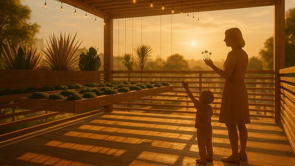 The project is distinguished by a conception of urban space centered on coexistence, light mobility, and the integration of greenery. Each floor has plants and trees on the façade, designed to provide shade during the summer months. On the rooftop, a communal terrace houses a shared vegetable garden, while a system of adjustable wooden slats allows for modulation of natural light according to the season or time of day.