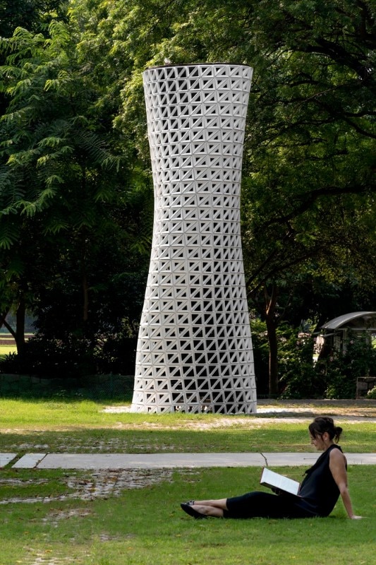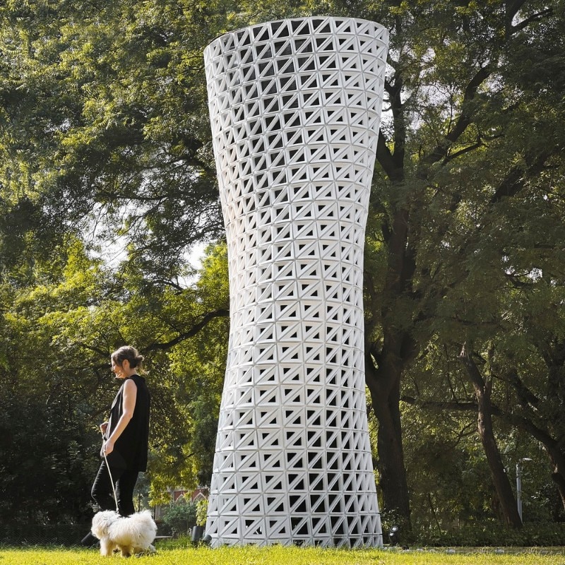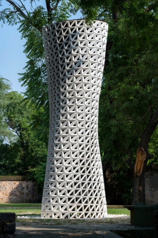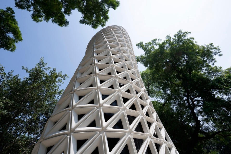 Studio Symbiosis has presented a prototype of a 360-degree air purification tower: the Verto purification tower is currently at work in New Delhi’s Sunder Nursery. It is a large-scale, 5.5-meter-high system with a multidirectional air purification function to filter the air and make it healthier for the humans and animals around it.