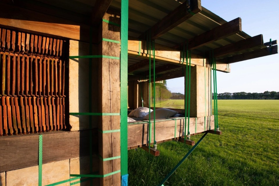 In Veenhuizen-a village of about 800 inhabitants in the Netherlands-architectural firm Overtreders W recently built a temporary hotel that was constructed so that it could be entirely disassembled without damaging the materials used. In fact, the habitable cabin is entirely made without the use of glues and screws, preferring the use of fastening straps to make the structure stable so that the materials borrowed from the villagers could be returned without damage or depreciation.