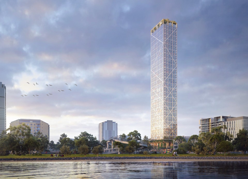 The residential tower will be placed on a podium with a public space planted with native flora, aiming to provide a place for community involvement and facilitate the recovery of the black cockatoo bird and other local endangered species.