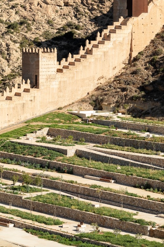 Landscape studio KAUH has developed a delicate landscape restoration project for the area, where environmental regeneration and spatial reinterpretation intertwine to define this proposal, which aims to rediscover a place that is already strongly characterized by the natural and anthropogenic boundaries that surround it. In fact, the park is bounded by the Alcazaba Hill to the southwest, the San Cristobal Hill to the northeast, the Jayrān Wall to the northwest, and the Calle Luna Dam to the southeast.