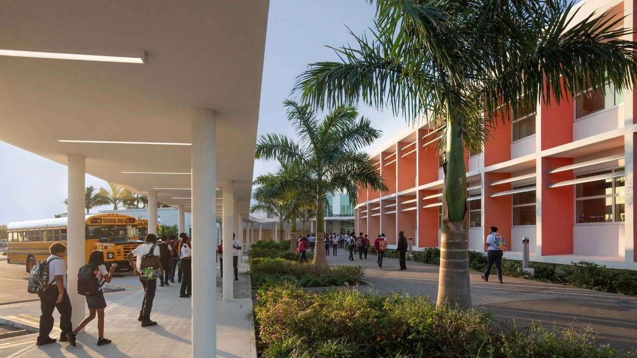 During the design process, the team worked to reflect in the architecture the growing impact of climate change on the islands, thus making the school also suitable as a hurricane shelter for a capacity of more than 3,000 people. The architects therefore had to ensure that the building could withstand winds of over 250 kilometres per hour while remaining fully operational, with functioning power, ventilation and cooling, and an independent water supply.