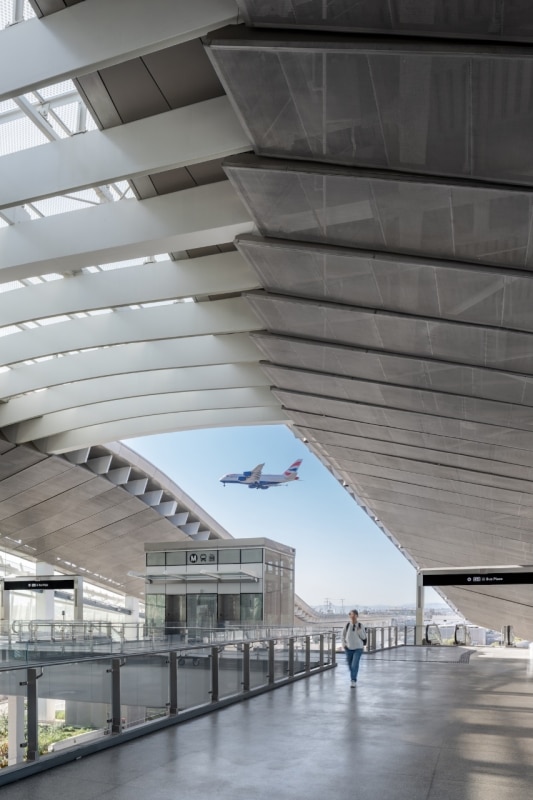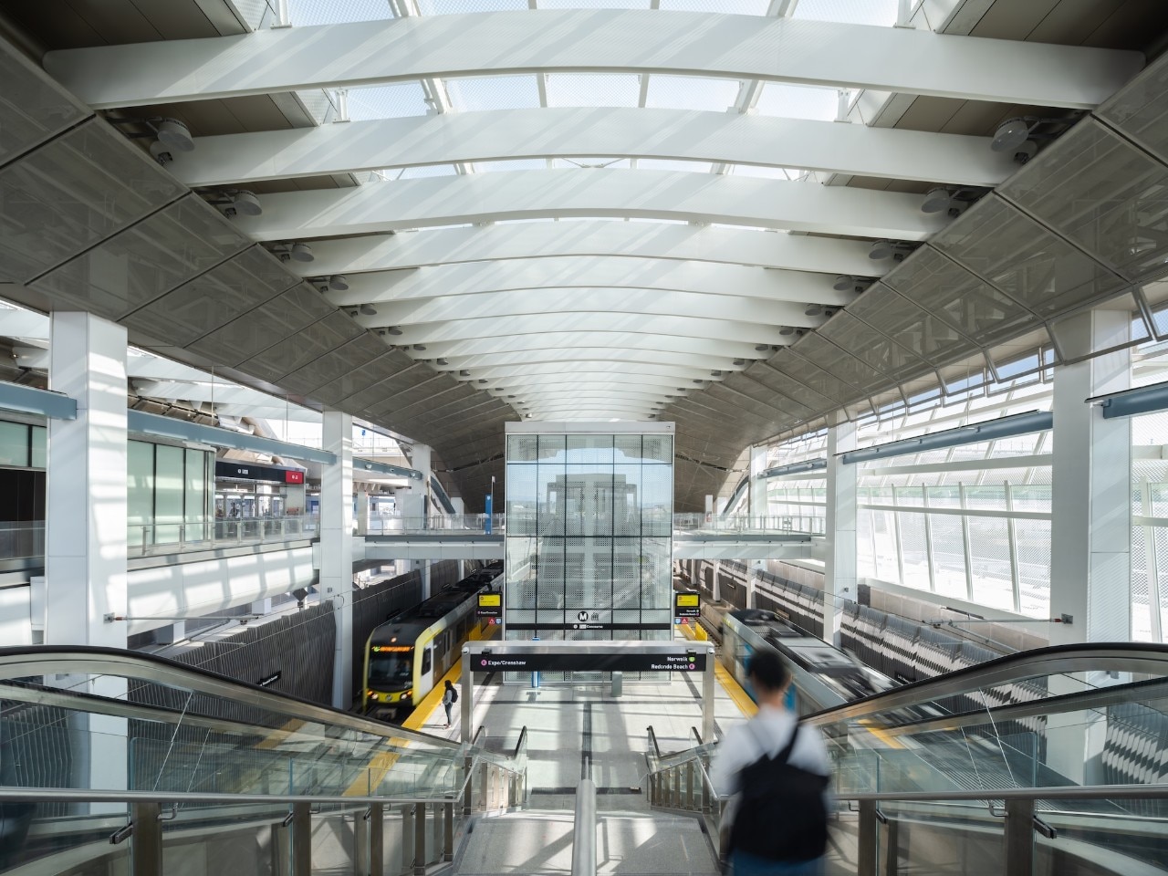 The project is part of the broader Landside Access Modernisation Program (LAMP), a multi-year plan that also includes the Automated People Mover, an automated shuttle system that will come into operation in the coming months and will directly connect the station to the terminals. The new infrastructure was developed by a team led by Grimshaw Architects, with Gruen Associates as associate architect and Arup for engineering. It consists of a two-level system housing the railway platform – the largest in the entire Metro network –, an intermodal bus hub, a public plaza, a service centre and a cycle and pedestrian hub.