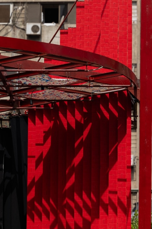 In Agouza Children's Park, one of the few green spaces still accessible in Cairo, stands a ten-meter-high red structure: Pergola, a new community and cultural space designed by CLUSTER (Cairo Lab for Urban Studies, Training and Environmental Research) in collaboration with London-based studio THISS and company Orient Productions. Placed along the west bank of the Nile, next to the heavy traffic of the 6th of October bridge, the installation takes on the role of an urban signal and public presidium in a city where building pressure is progressively reducing open and shared places.