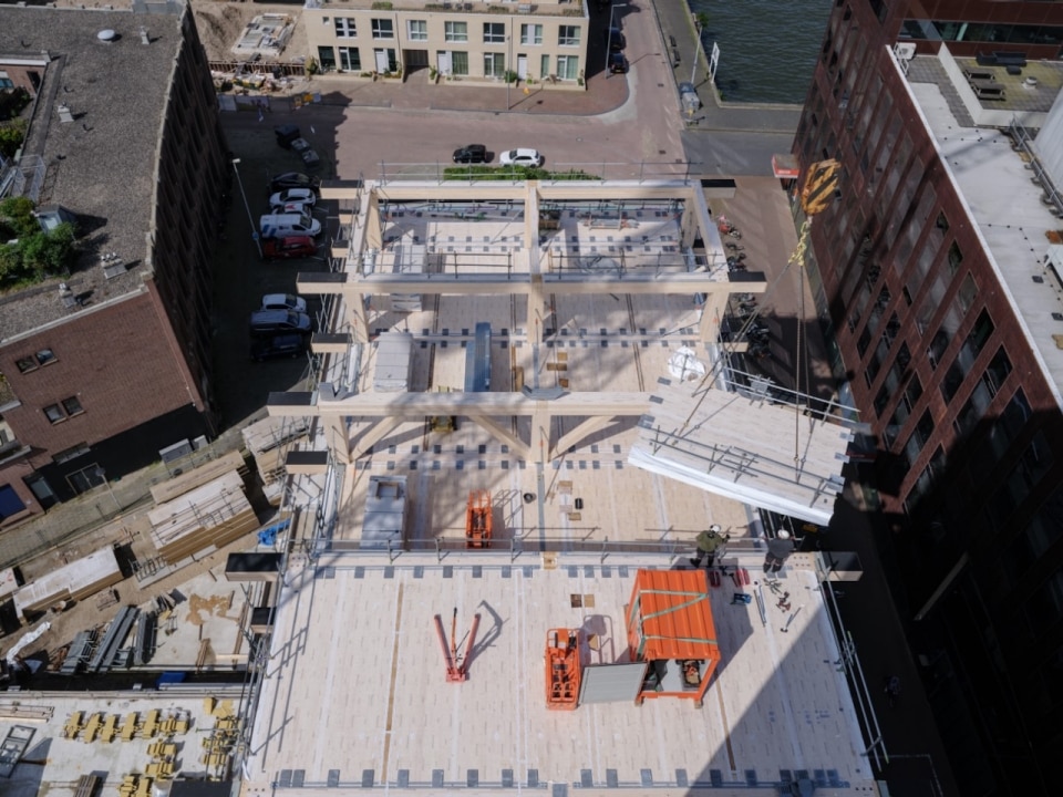 In Rotterdam, one of Europe’s architecture capitals, the residential building SAWA has opened in the Lloydkwartier, a former port area now transformed into an urban district. The 50-metre-tall timber structure introduces a new housing typology defined by a series of green terraces that reshape the riverfront.