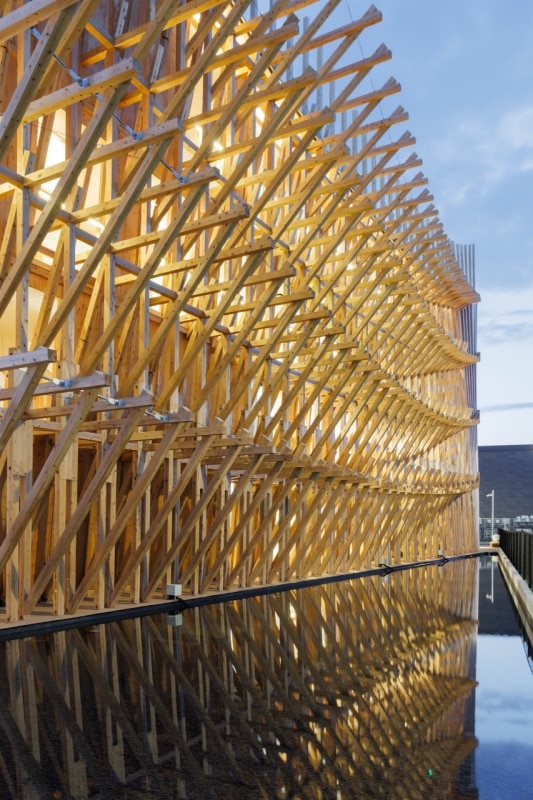 Technology, therefore, not as a formal shortcut but as a means to manage complexity and reduce waste without erasing the collective dimension of the work. Here the theme of inclusion naturally returns — not as a slogan, but as a quality of the construction process. “A good detail is about understanding the materials you are building with and how things come together… sometimes you have to go behind the drawing — go to the industries, see the craftspeople, and learn from their knowledge.” In the projects she mentions — from the Beirut tower to the Bahrain Pavilion at Expo Osaka — material becomes a vehicle of relationships: “Using unengineered wood allowed us to involve craftspeople in Japan… the whole process of making became a process of pride. It was so much a human venture — suddenly, even if you don’t speak the language, architecture makes you speak the same language.” Within this framework, the detail is not merely a technical point but a place where skills, economies and identities converge.