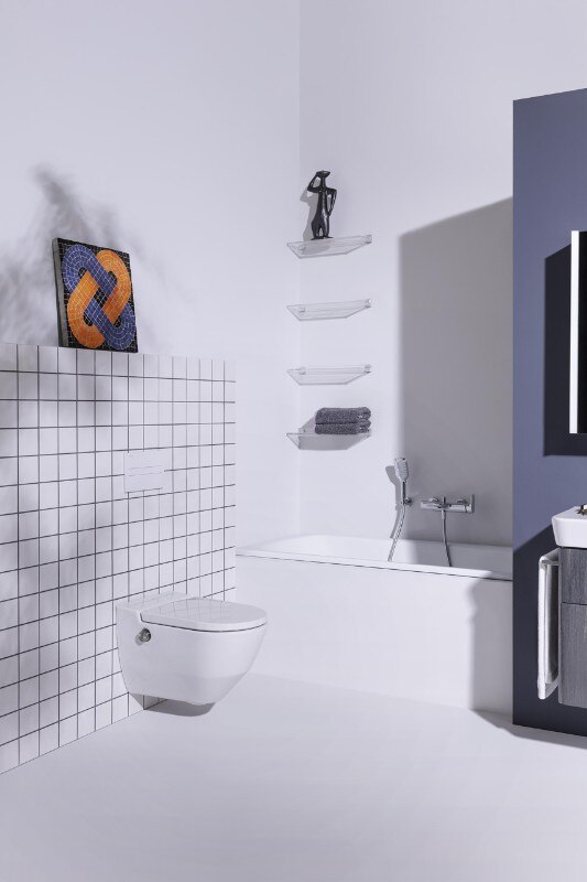 Un sistema di pulizia termica all’interno del sanitario lo igienizza regolarmente con acqua a 70°C. Questo è accompagnato da un programma di decalcificazione che libera il sistema dal calcare a seconda del grado di durezza dell’acqua impostato nel sistema, garantendone così la lunga durata. Le attività di pulizia, decalcificazione e manutenzione sono programmabili attraverso l’app, che permette anche di personalizzare le impostazioni di fabbrica. Il WC risponde quindi ai massimi standard igienici, consentendo l’utilizzo del prodotto anche in ambito sanitario.