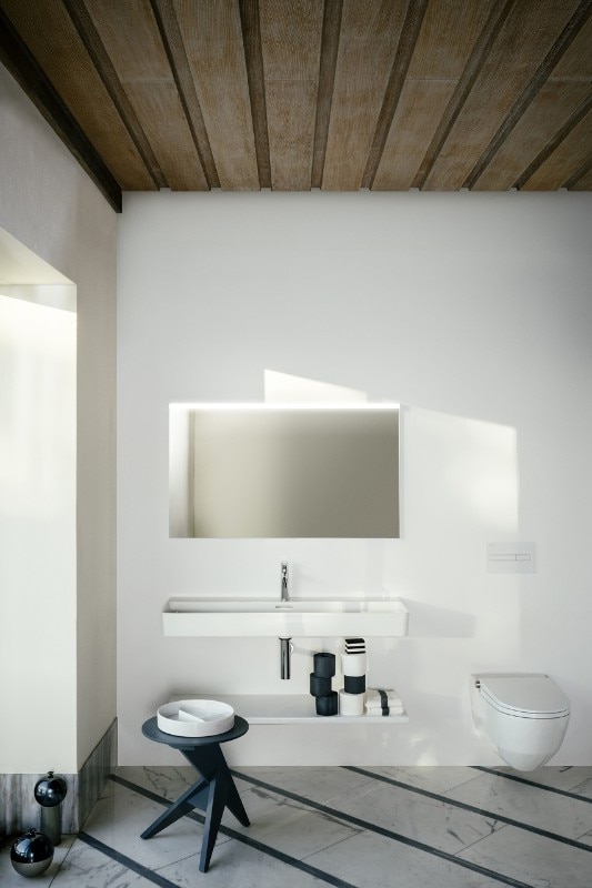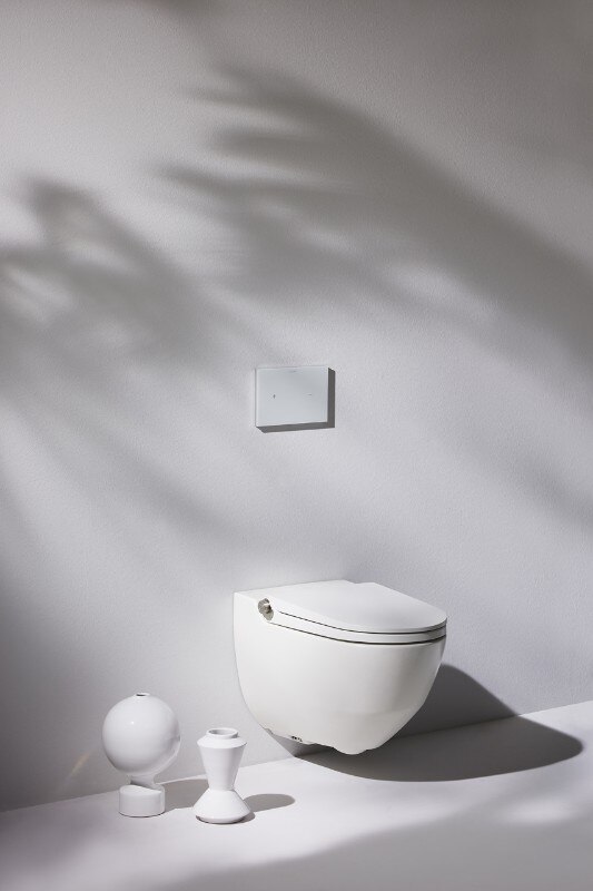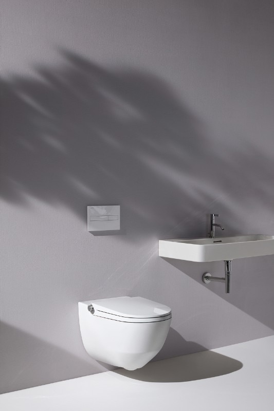 I due WC con doccia progettati dal designer svizzero Peter Wirz per Laufen sono pressoché identici ai normali sanitari attualmente in commercio. Solo una piccola manopola sul lato del corpo chiuso in ceramica segnala le innovazioni introdotte dal marchio svizzero. “La nostra idea di perfezione nasce dall’armonia dell’oggetto, sempre strettamente connessa alla sobrietà”, spiega il progettista.