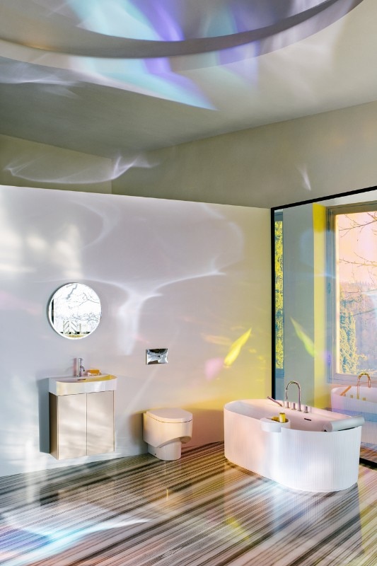 I lavabi, le bacinelle e le vasche da bagno della collezione Sonar, prodotta da Laufen, presentano forme sinuose e spessori ridotti grazie all’innovativo materiale ceramico SaphirKeramik.