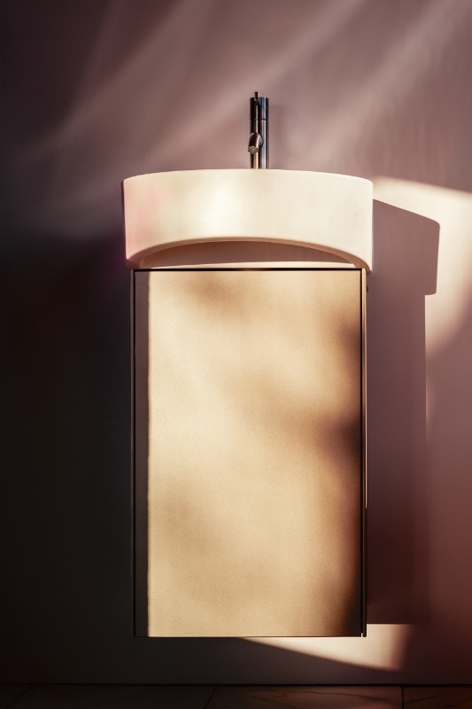 “Come metafora, il nome Sonar si ricollega all’acqua: in questa forma di ecolocalizzazione, si emettono impulsi acustici per rilevare la presenza di oggetti sott’acqua,” racconta Patricia Urquiola. “Mi piaceva l’idea di utilizzare delle piccole onde generate dal suono. La texture all’esterno delle bacinelle è stata modellata sulla base di queste onde. Non volevo limitarmi a lavorare con la leggerezza della ceramica: volevo anche trovare un modo per tracciarvi un disegno in superficie.”