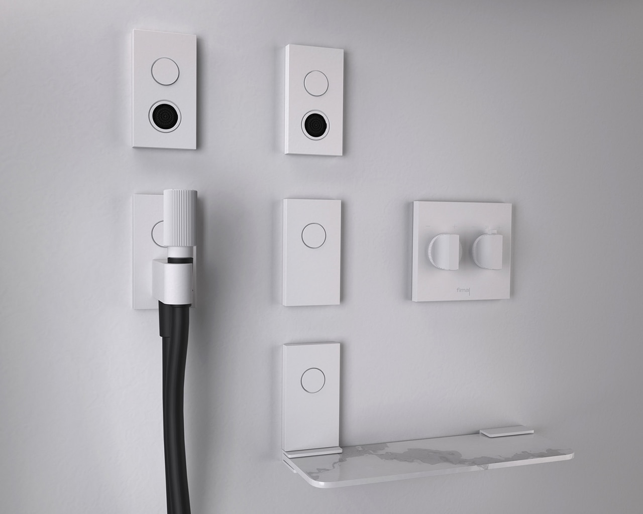 Fima Carlo Frattini cambia sostanzialmente il mondo della doccia: al contrario dei sistemi esistenti – in cui solo dalla posizione di regolazione della temperatura e del flusso è possibile azionare le varie utenze attraverso i deviatori – Switch fa corrispondere al tasto premuto la relativa uscita. Questo comporta una grande libertà compositiva, scegliendo dove posizionare doccetta, tubo Kneipp, getti laterali, bocca a parete e pulsante on/off.