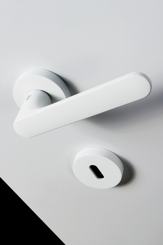 Oltre alle maniglie, la collezione include: nottolini per porte e bagno, due kit per porte scorrevoli, un maniglione senza rosette e un maniglione per alzante scorrevole, declinati sia nella versione con rosetta e bocchetta tonda (One) sia nella versione con rosetta e bocchetta quadrata (OneQ).