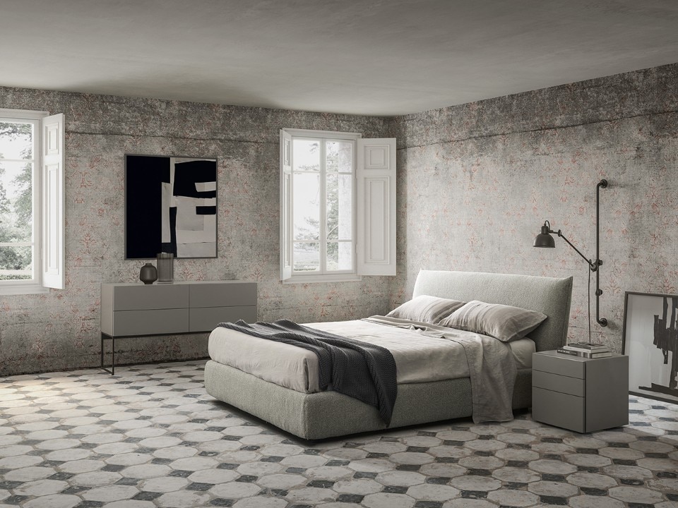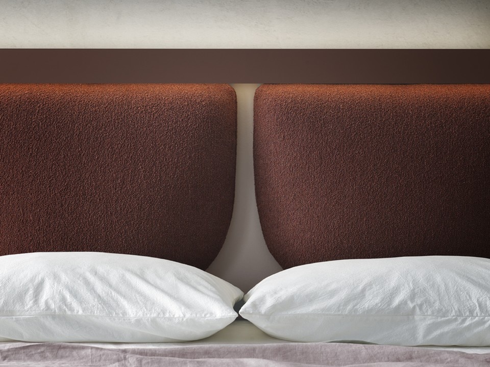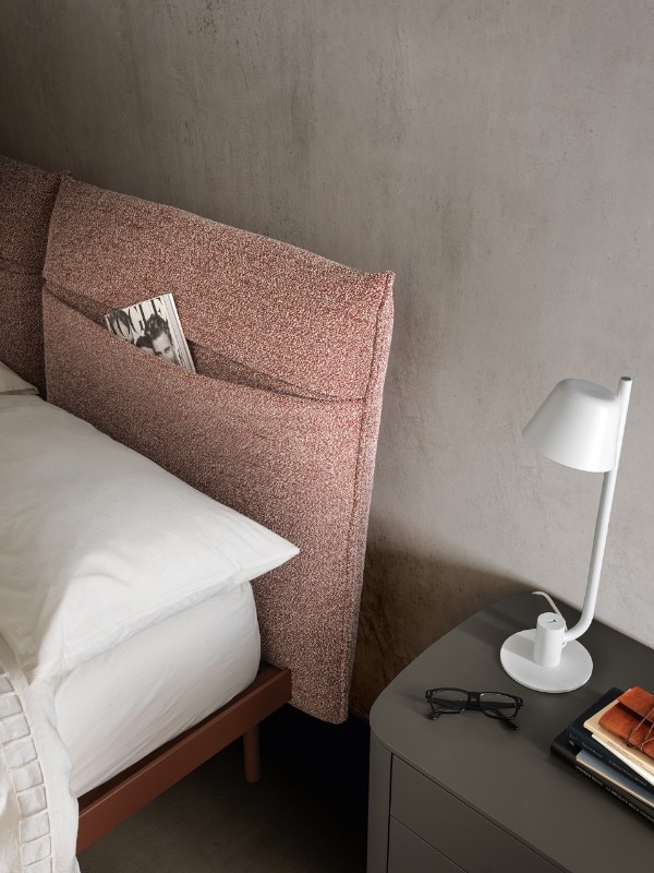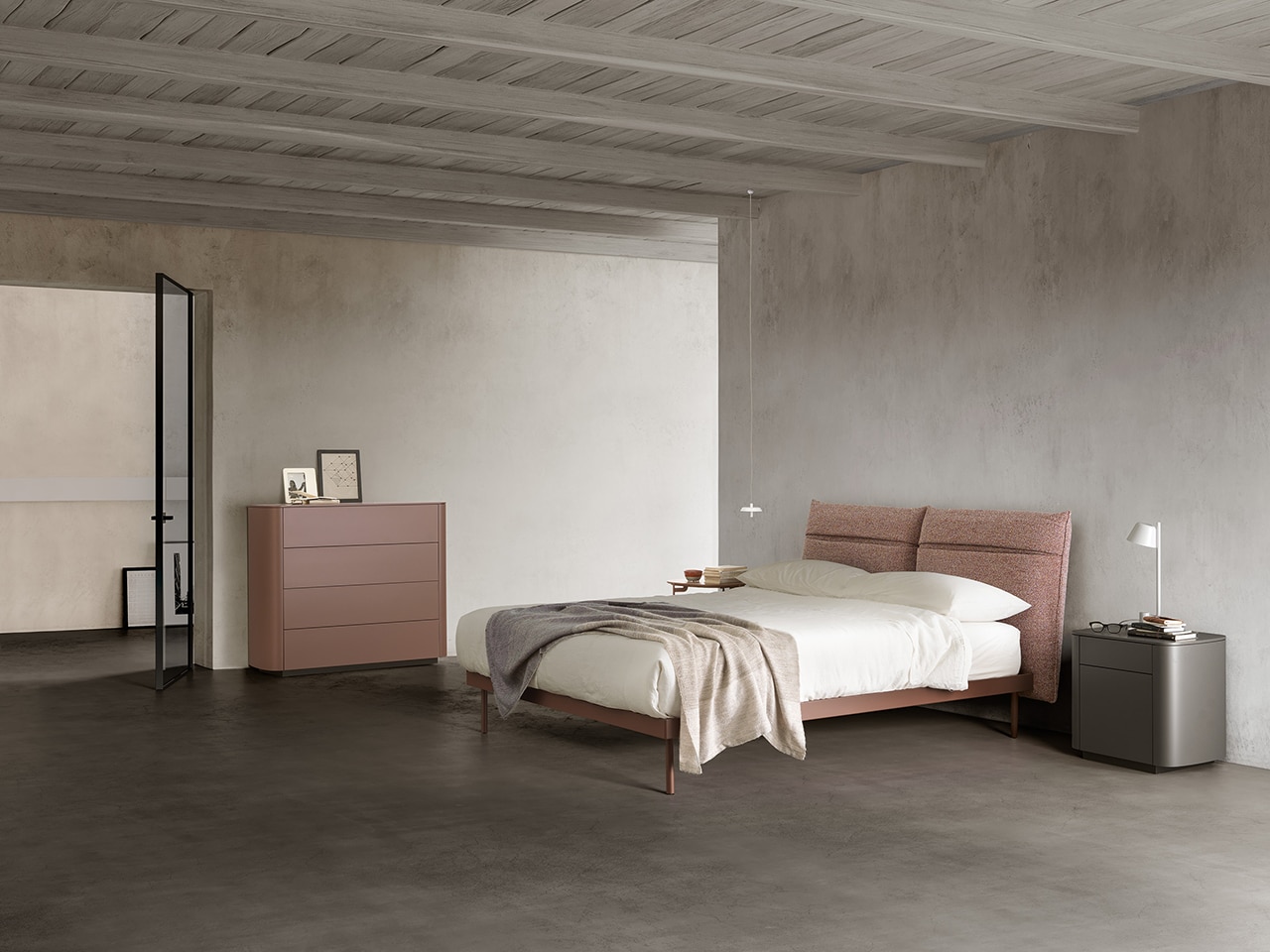Con Groove, la designer Monica Graffeo mette in atto una destrutturazione del letto. Un’originale barra multifunzionale di alluminio può fungere anche da testiera, ma che può anche essere interpretata con grande libertà, anche grazie all’aggiunta di diversi accessori. Sempre di Monica Graffeo è il design di Ajar: letto tessile che prende il nome dalla fessura socchiusa – ajar in inglese – che si apre nei cuscini che compongono la testiera. Le linee grafiche, morbide ed essenziali, generano un prodotto pulito e originale. Stile minimalista, accuratezza nelle proporzioni e nelle finiture: Filesse è un letto che fa della pulizia il suo punto di forza. Il prodotto è caratterizzato dal profilo a S della testiera, che segue naturalmente la postura della schiena. Un’imbottitura abbondante definisce lo stile di Toffee, un letto che con le sue linee curve accoglie le persone come in un grande abbraccio.
