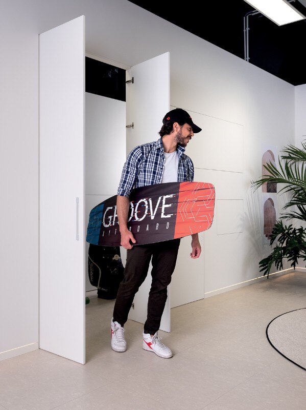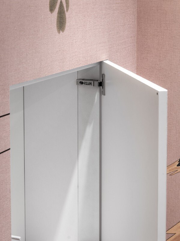 Da queste esigenze l’azienda italiana Eclisse è partita per realizzare Syntesis® Areo, un sistema di chiusura filomuro studiato per celare cabine armadio, scarpiere, nicchie, sottoscala attrezzati, vani tecnici e quadri elettrici.