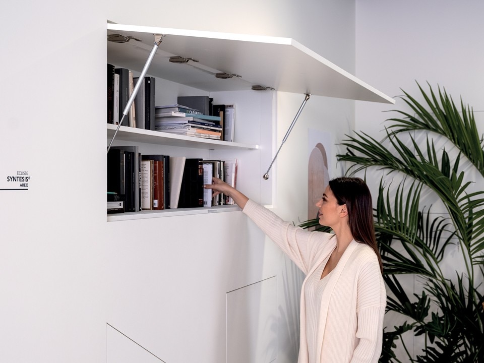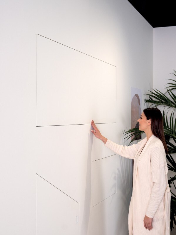 Versatilità, discrezione e personalizzazione sono le tre qualità fondamentali di Syntesis® Areo, un sistema che offre numerose configurazioni, aperture e dimensioni, anche su misura. Gli sportelli filo muro garantiscono una perfetta continuità tra anta e parete, e sono pensati per un uso quotidiano attraverso comode aperture push-pull completamente invisibili. Inoltre, i pannelli sono trattati con primer in modo da esser pitturati e rifiniti esattamente come le pareti, offrendo una totale omogeneità.