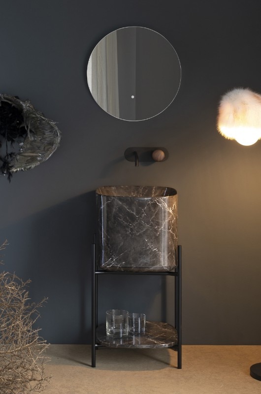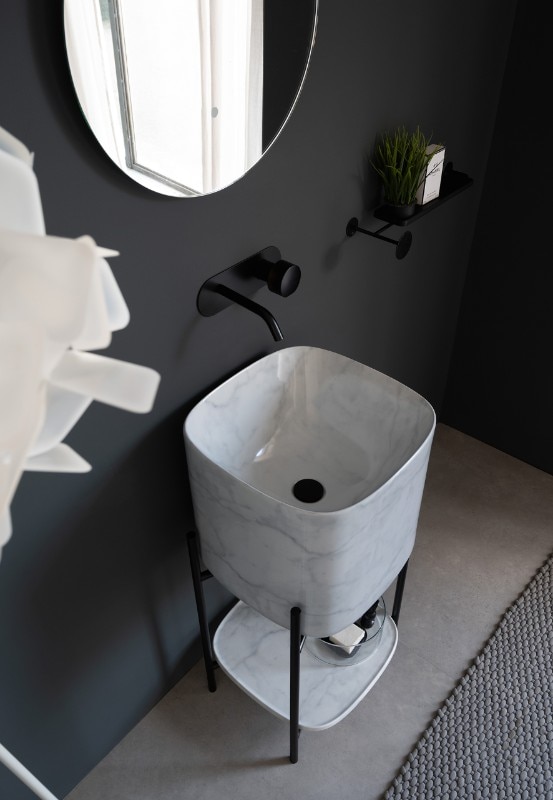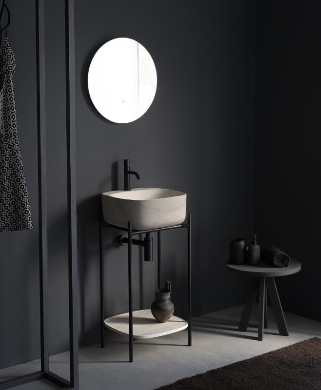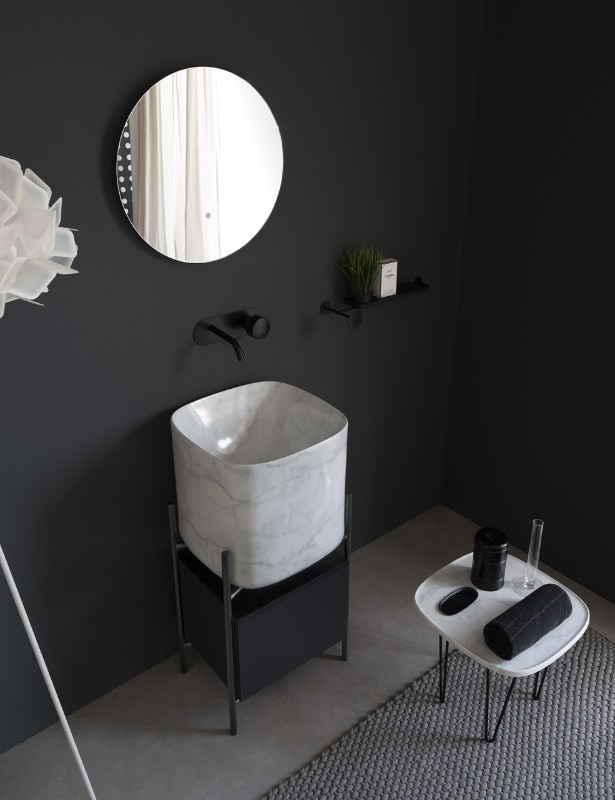 Rigorosamente Made in Italy, Moon è realizzata in ceramica e si declina in dieci diverse configurazioni di lavabo completo di sanitari. Pezzo centrale della collezione è senza dubbio il volume freestanding, che risulta essenziale ed asciutto nella forma e nella materia. Oggetto complesso nella progettazione quanto semplice e primordiale nell’estetica, è frutto di un nuovo modo di concepire e fruire lo spazio domestico e in particolare il bagno, che è sempre meno un ambiente di servizio e sempre più la stanza dedicata al benessere e alla privacy.