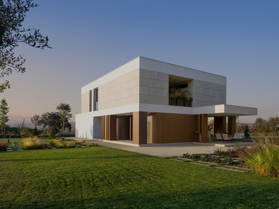 Una casa moderna, circondata da un ampio giardino in cui crescono rigogliosi arbusti e piante tipici della macchia mediterranea: a Benevento, le architette Laura Lampugnale e Rosanna Giallonardo interpretano le tecniche costruttive locali attraverso le loro intuizioni architettoniche e combinazioni materiche. Il progetto nasce dalla completa riconfigurazione di una struttura esistente, la cui costruzione però era stata interrotta dopo la realizzazione delle strutture e dei tamponamenti.