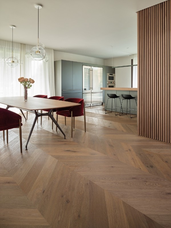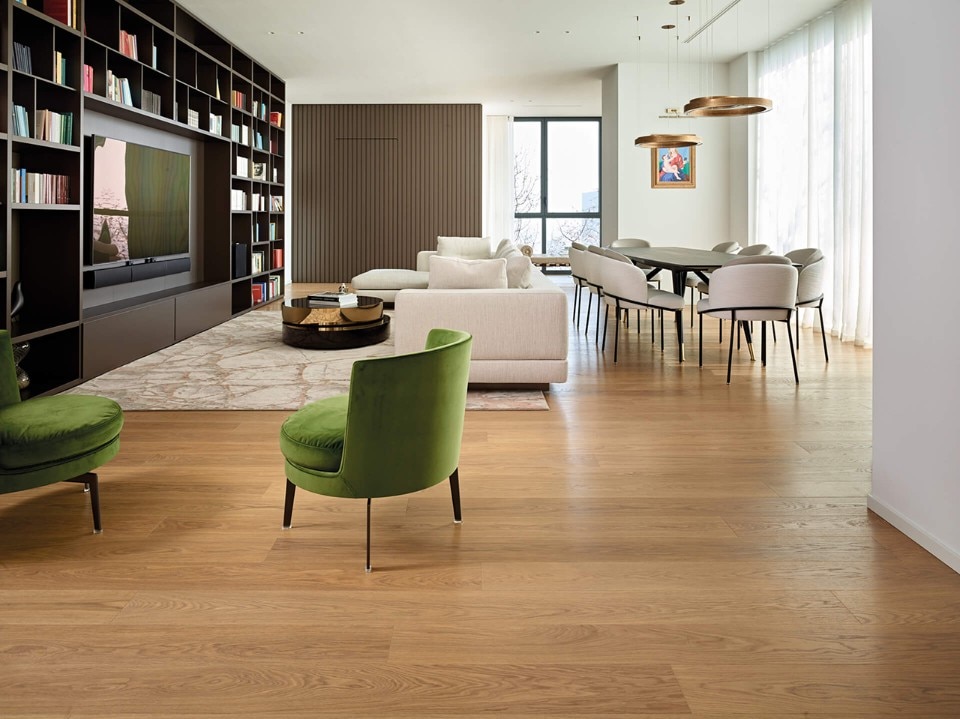 Per la finitura del legno, l’impresa ha ideato il trattamento BioPlus® che permette al materiale di restare vivo e libero di respirare e assicura anche un’ottima resistenza all’usura e una manutenzione semplice ed efficace. L’applicazione di questo particolare olio naturale composto da oltre 50 sostanze vegetali e minerali (le stesse di cui l’albero si nutre in vita) richiede 24 ore di tempo e sei fasi di lavorazione, a differenza di altri trattamenti che si concludono in meno di dieci minuti. Una lentezza preziosa. È infatti sempre grazie al BioPlus® che i legni biocompatibili di Fiemme Tremila ‘fanno bene’ e, come certificato nel 2017 dal CNR-IVaLSA, sono in grado di migliorare la qualità dell’aria indoor.