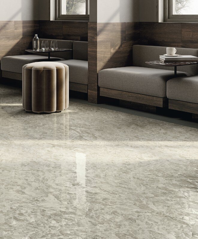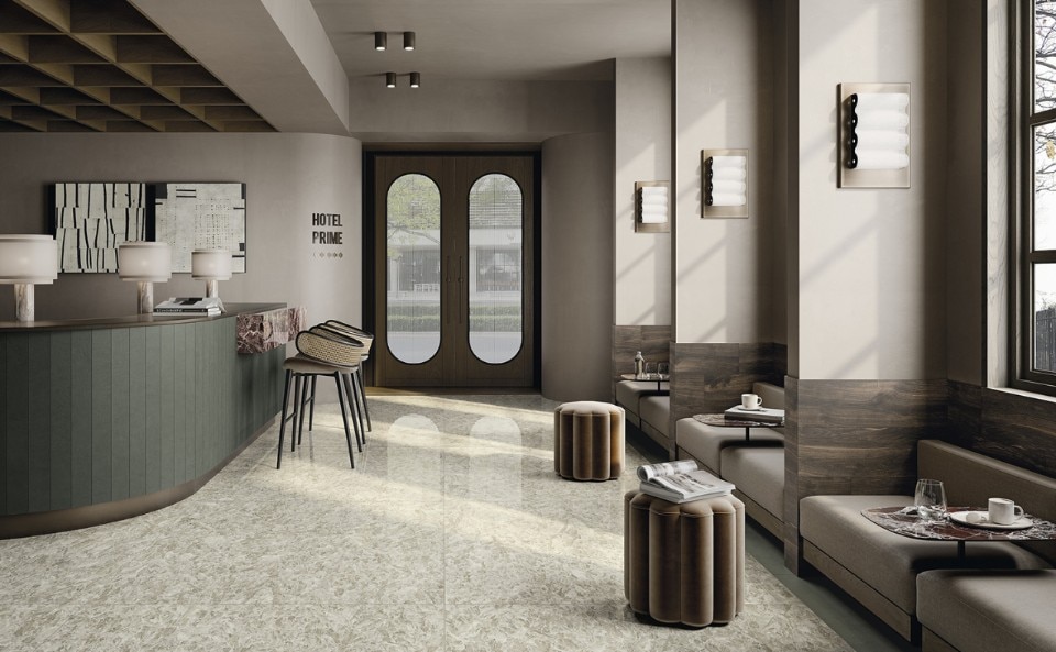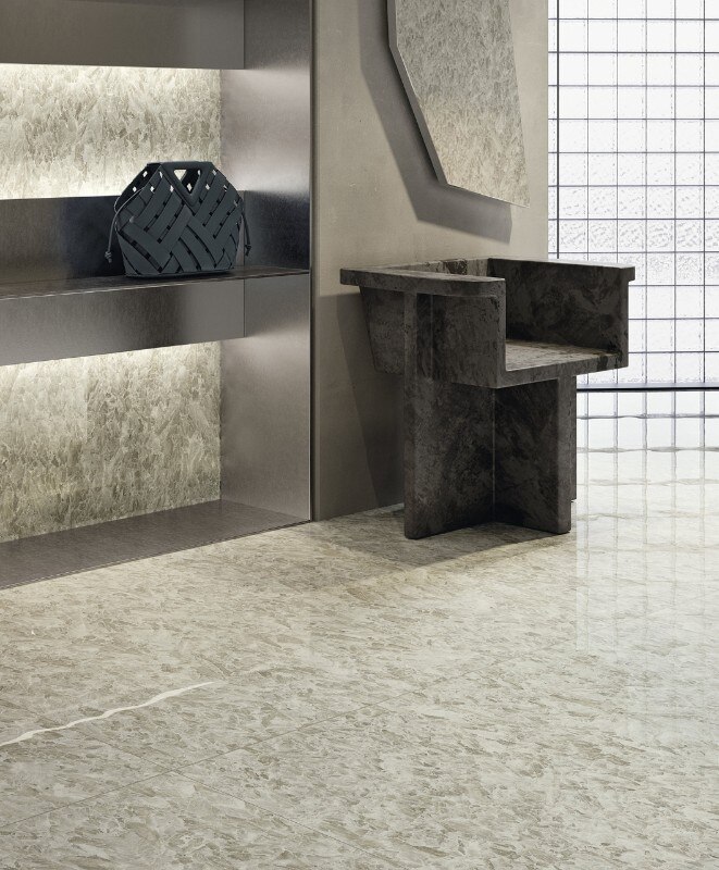 Le nuove superfici Selenite Maximum sono visibili nello showroom milanese ICG Gallery Milano di Iris Ceramica Group, di cui Fiandre fa parte.