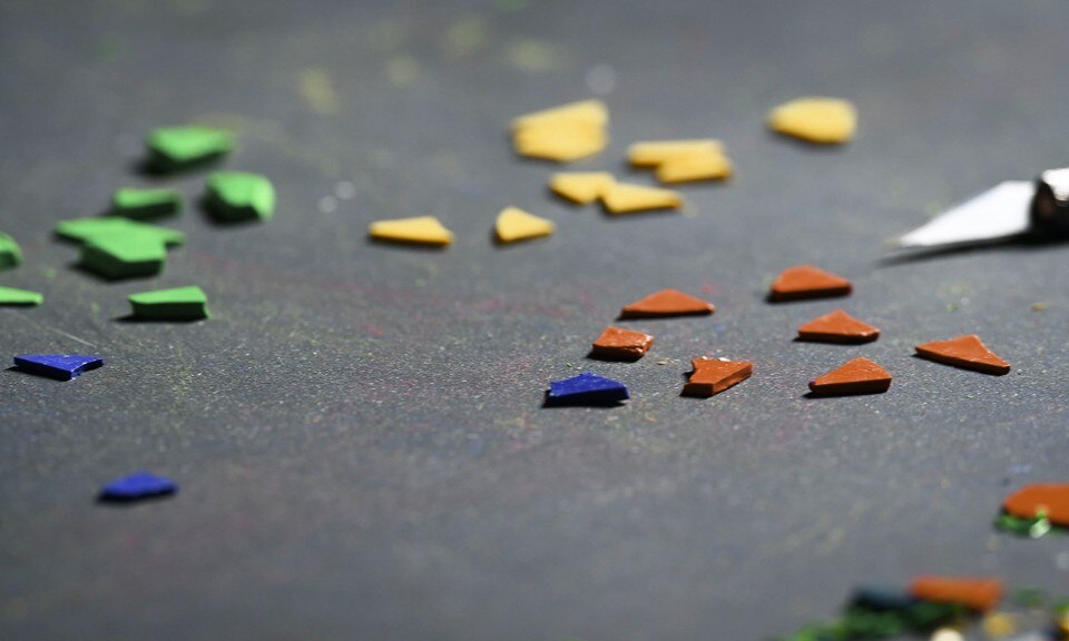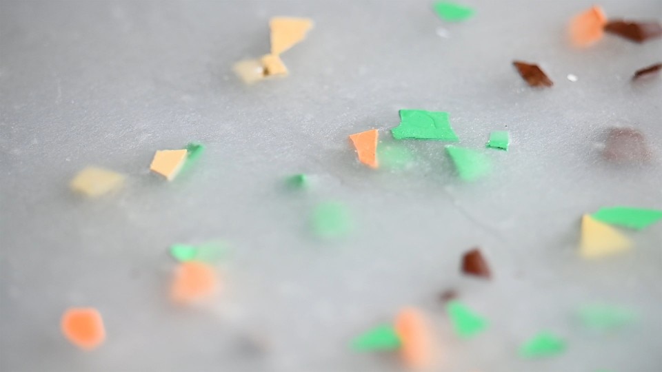 Grazie agli interessanti stimoli di ricerca che questa collezione ha fatto emergere, il percorso di sperimentazione dell’azienda è proseguito dopo il lancio della collezione allo scorso Cersaie portando ad una nuova evoluzione della gamma: Cera. La variante Scaglie è l’esito di un approccio totalmente manuale: alla cera appena colata sono stati aggiunti frammenti colorati di cera solida, che affondano nel materiale liquido fermandosi a livelli diversi e risultando quindi più nitidi o più sfuocati. Ne deriva a un affascinante intreccio di percezioni, in cui il dialogo dei colori con lo sfondo genera un’opera grafica inedita e singolare.