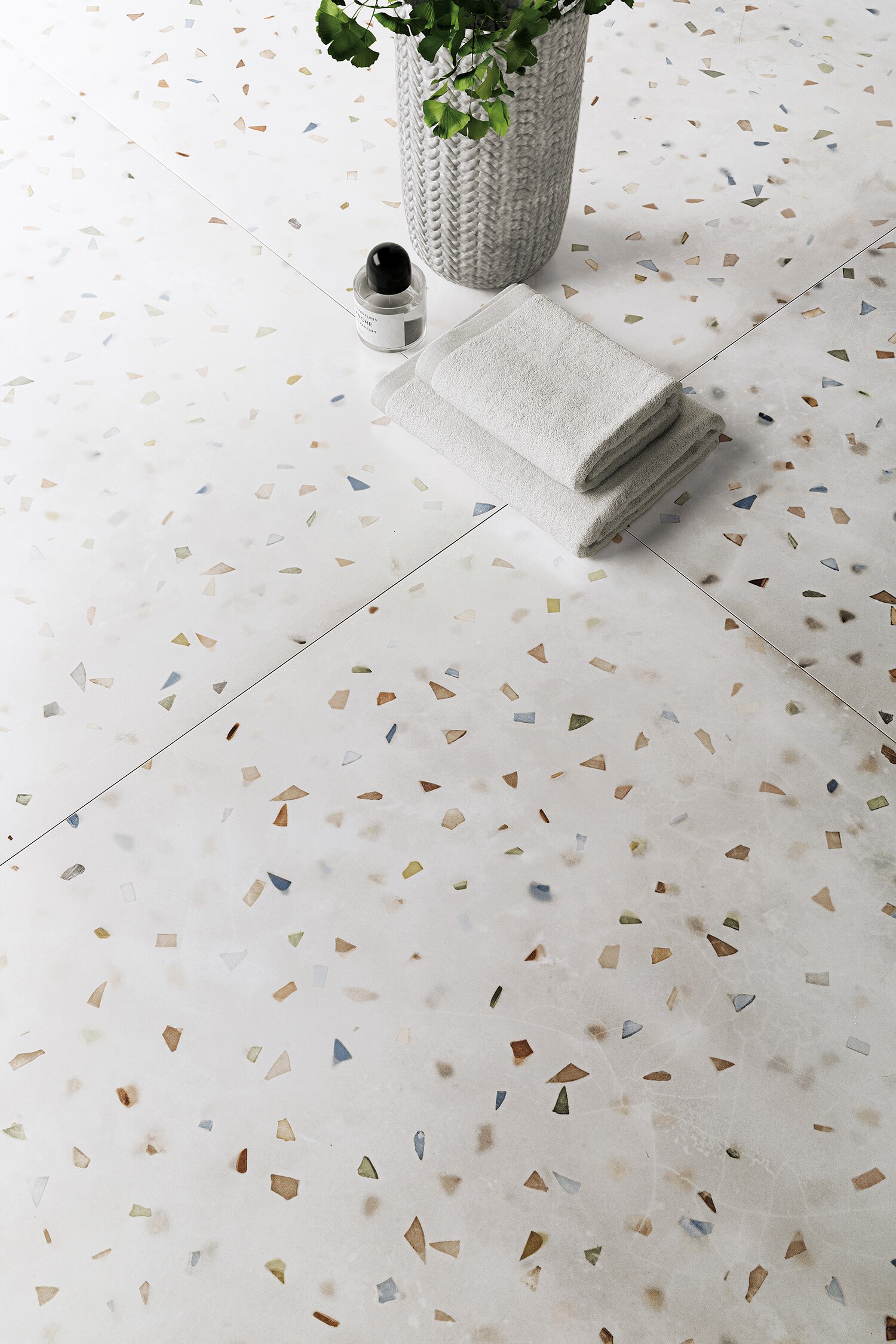 La nuova collezione Cera di Refin traduce su ceramica le sensazioni visive e tattili della cera appena colata, a cui sono stati aggiunti frammenti colorati di cera solida.