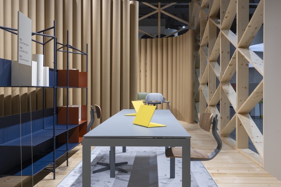 Per raccontare queste trasformazioni, lo stand dell’azienda e la sua scenografia sono stati completamente ripensati da Ferruccio Laviani. Il concept “Transcendence: The Fusion of Living and Working Spaces” illustra la rinnovata identità del brand sempre più in equilibrio più fra la dimensione office e residenziale. All’interno di un setting neutro ispirato alle eco-architetture contemporanee – “mini-ambientazioni” rappresentative di contesti del quotidiano – hanno ospitato sia le nuove collezioni sia i best seller di Mara che convivono e interagiscono grazie a un linguaggio stilistico complementare, seppur frutto di firme creative differenti.