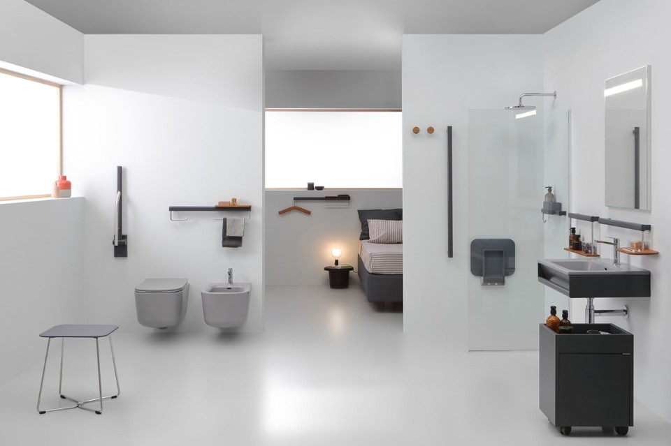 L’azienda italiana presenta Omnia, una linea di elementi versatili e completi che permettono all’utente di muoversi in bagno serenamente e svolgere attività quotidiane di cura di sé con naturalezza. La collezione, composta da maniglie di sicurezza accessoriate, sedute doccia, mobili contenitori, lavabo, sanitari e specchi – che possono integrare sistemi di igienizzazione pensate per chi vuole creare un ambiente protetto, privo di pericoli e confortevole, fornito di ogni supporto che possa limitare sforzi e rischi.