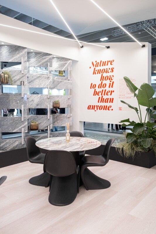 Oltre alle novità digitali, la sostenibilità ha giocato un ruolo fondamentale. La Rete PNA (Pietra Naturale Autentica), di cui FUM fa parte, ha lanciato ufficialmente il progetto LCA Mondo (Life Cycle Assessment), uno studio settoriale realizzato dal Politecnico di Torino che valuta l’impatto ambientale delle pietre naturali lungo l’intero ciclo di vita, dall’estrazione alla lavorazione, fino all’applicazione finale. Questo progetto rappresenta un passo fondamentale verso una maggior consapevolezza e trasparenza sull’impatto ecologico della pietra naturale, offrendo a progettisti e clienti uno strumento concreto per fare scelte più informate e sostenibili. LCA Mondo è il frutto di un lavoro di ricerca rigoroso, che mira a promuovere un utilizzo responsabile della pietra, rispettando l’ambiente e tutelando le risorse naturali.