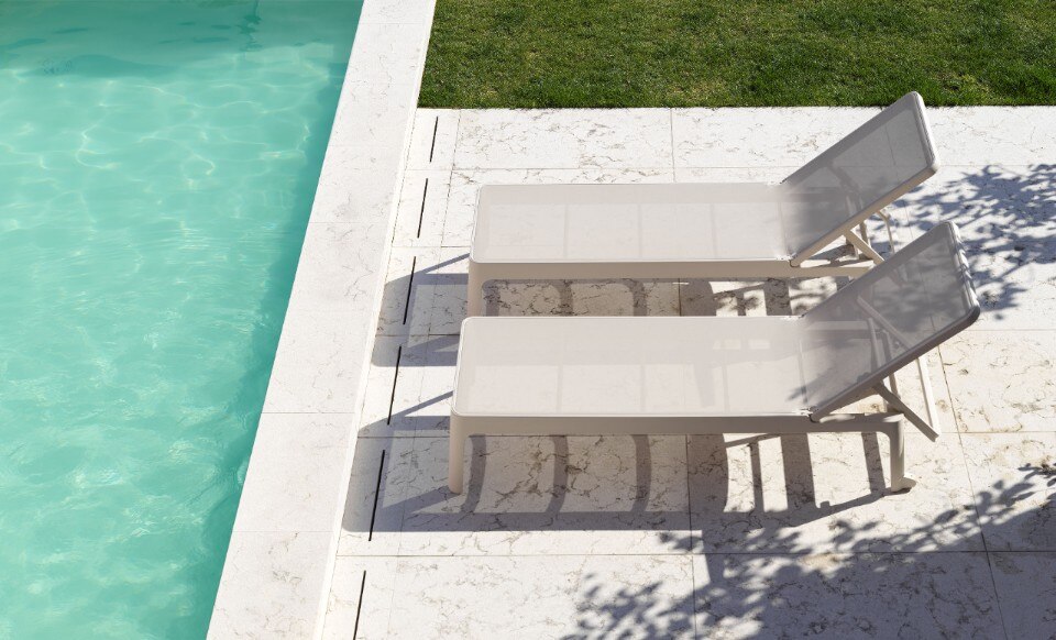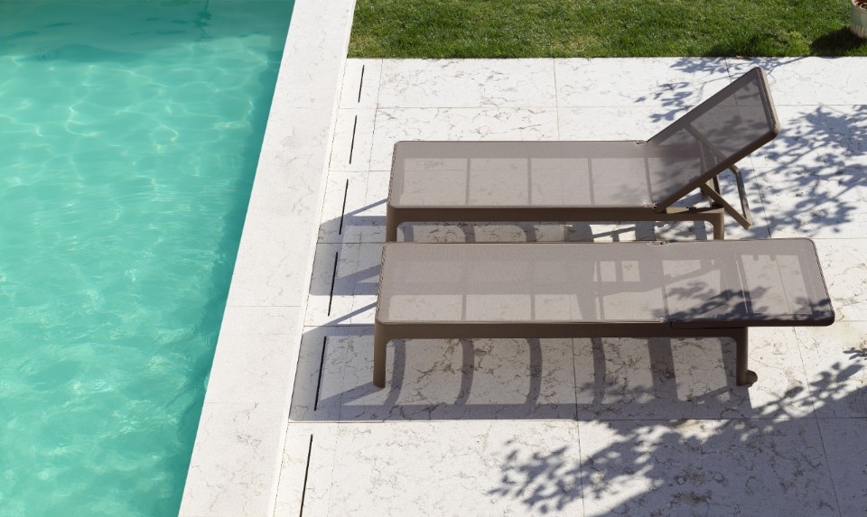 Con un sistema brevettato e materiali resistenti e sostenibili, Plano è il lettino prendisole di Nardi disegnato da Raffaello Galiotto.