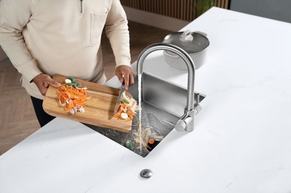 Il dissipatore si installa con facilità sotto il lavello, senza occupare spazio aggiuntivo né richiedere modifiche strutturali, sia nelle cucine nuove che in quelle già esistenti. Una soluzione pratica che elimina la necessità di un contenitore per i rifiuti organici, contribuendo a mantenere la cucina più ordinata e funzionale.