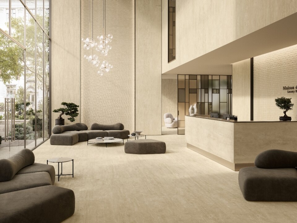 Marvel T è il travertino reinventato. C'è chi riproduce e chi interpreta. Atlas Concorde, con il suo expertise consolidata nel mondo del marmo, sceglie la seconda via. Marvel T non è un semplice omaggio al travertino, ma una sua rivisitazione audace. Presenta varianti inedite, come la finitura Halo, e un'inedita armonia di texture e forme. La collaborazione con HBA, studio di architettura di fama mondiale, non è una semplice partnership, ma la prova che il design è un dialogo tra maestrie diverse. Qui, il travertino diventa la materia prima di un'idea di ospitalità di lusso e di retail di alta gamma.