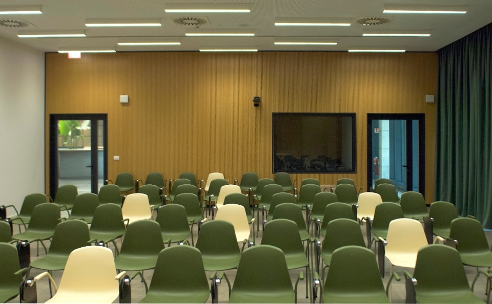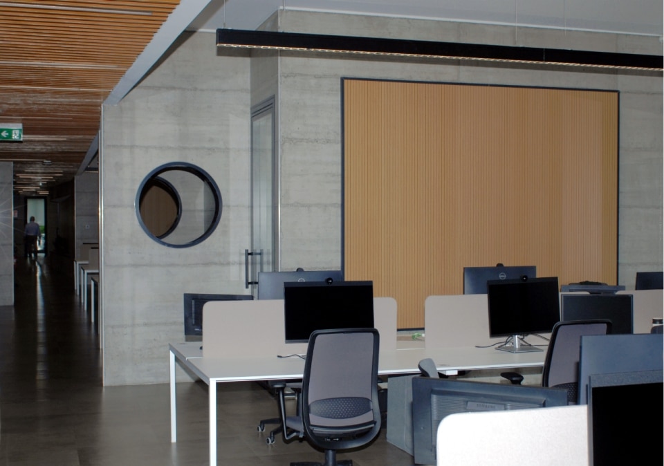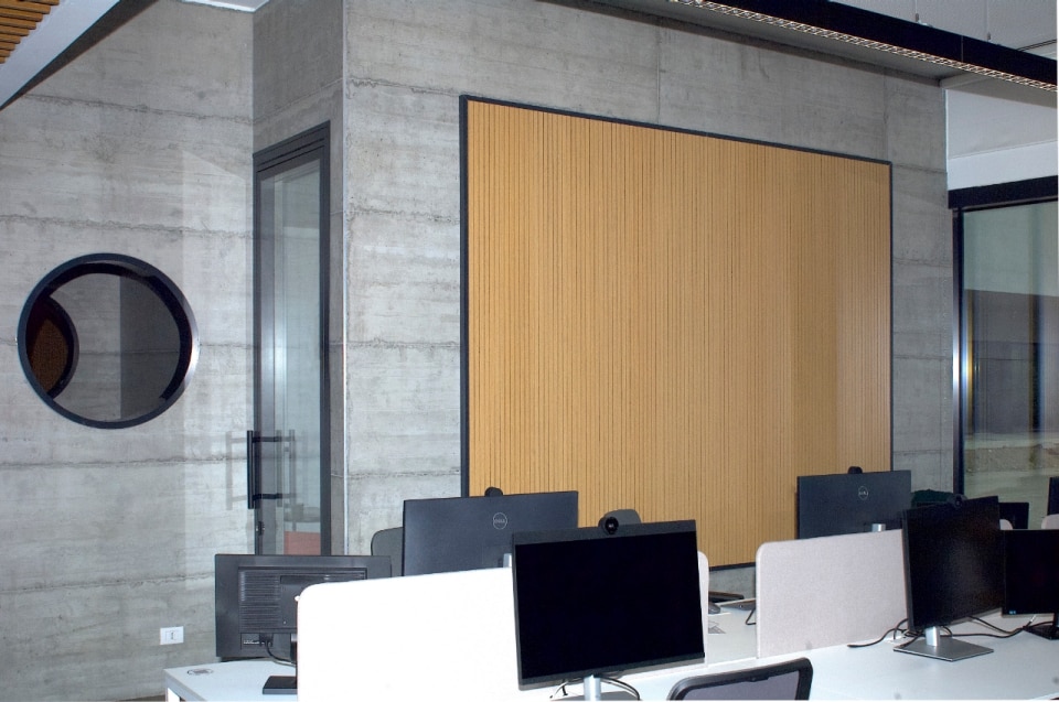 Unendo alte prestazioni tecniche e qualità artigianale, Rg2 firma Acousystem, una linea di rivestimenti acustici in legno che migliora il comfort sonoro degli ambienti di lavoro.
