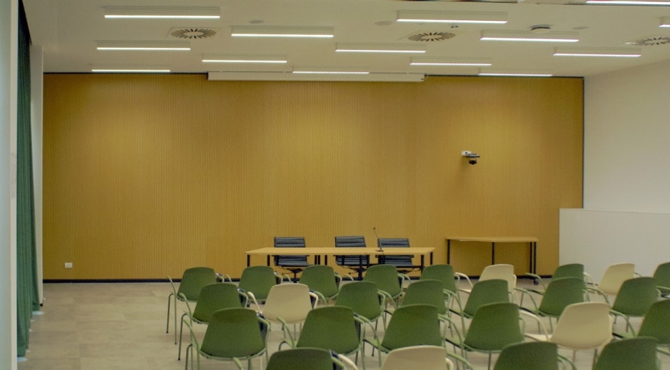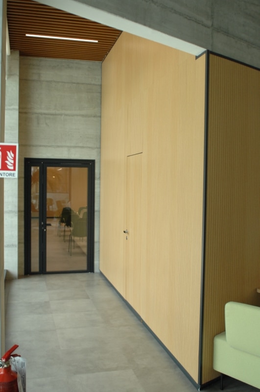I pannelli sono costituiti da doghe in legno lavorate con precisione accoppiate a un materassino fonoassorbente che consente di controllare efficacemente il riverbero nelle principali frequenze del parlato, migliorando il comfort acustico complessivo. La modularità del sistema garantisce grande flessibilità progettuale e facilità di posa, mentre la possibilità di personalizzare finiture, geometrie e schemi di installazione permette una perfetta integrazione con l’interior design. Alle prestazioni acustiche si affianca il valore materico del legno naturale, che contribuisce a creare ambienti accoglienti e qualitativamente elevati.