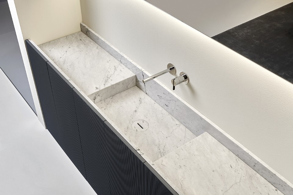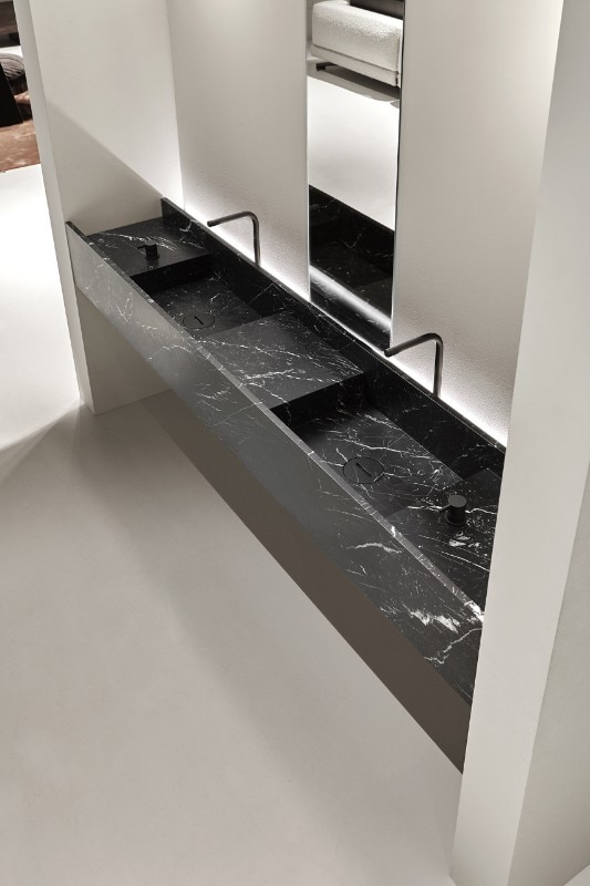 Il sistema modulare Street, progettato da AL Studio, valorizza un materiale elegante, espressivo e senza tempo, protagonista nelle collezioni di antoniolupo: il marmo. Il lavabo può essere declinato in numerose dimensioni e configurazioni: dalla versione con mobile a quella con il solo lavabo, per chi vuole dare enfasi al materiale. Il lavabo Street di antoniolupi è disponibile in tre varianti: marmo Bianco Carrara, Rosso Levanto, Marquinia, con possibilità di essere retroilluminato. Per esaltare ancora di più le infinite e meravigliose sfumature del marmo.