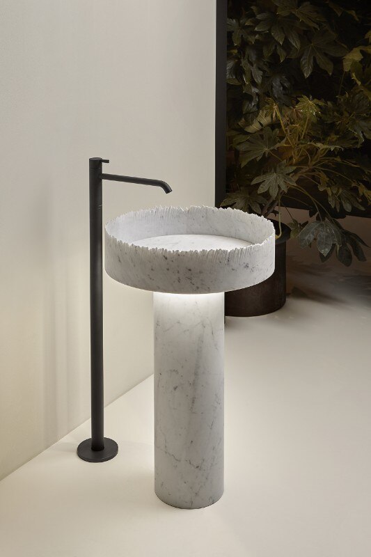 La forza e la fluidità dell’acqua possono plasmare il marmo e creare delle forme organiche? Questa è la sfida che il designer Paolo Ulian affronta con il lavabo Flow, creando un rapporto simbiotico tra macchina e materia lavorata, dove il confine tra l’una e l’altra si perde per dare vita a nuovi e inesplorati equilibri formali. “Il lavabo Flow non è un lavabo normale” è così che lo descrive Andrea Lupi, CEO di antoniolupi “È un oggetto sperimentale, che rientra nella categoria dei lavabi in marmo”.