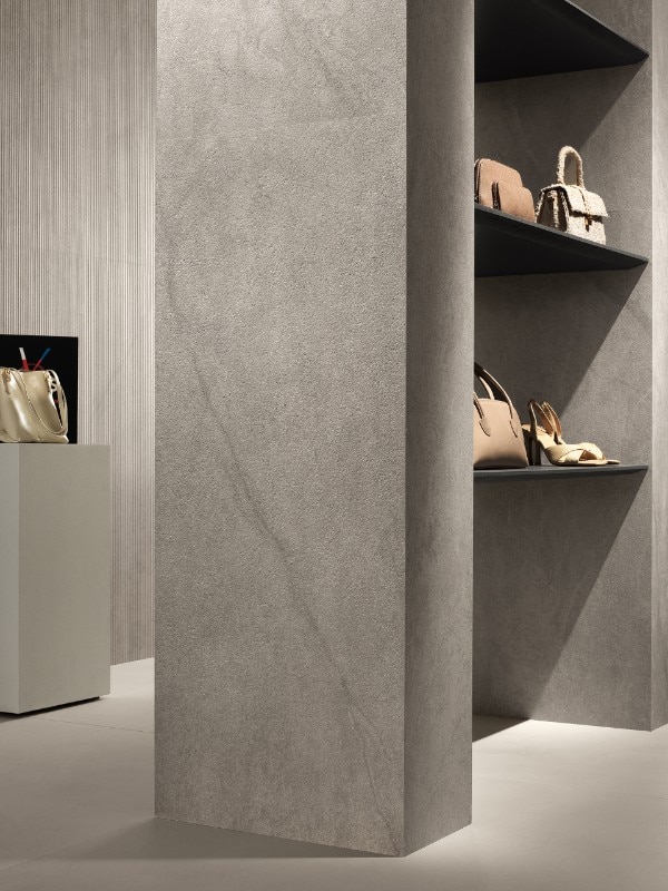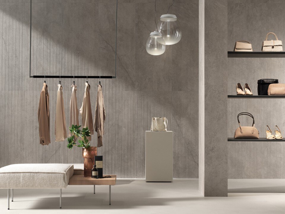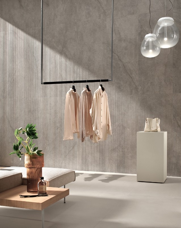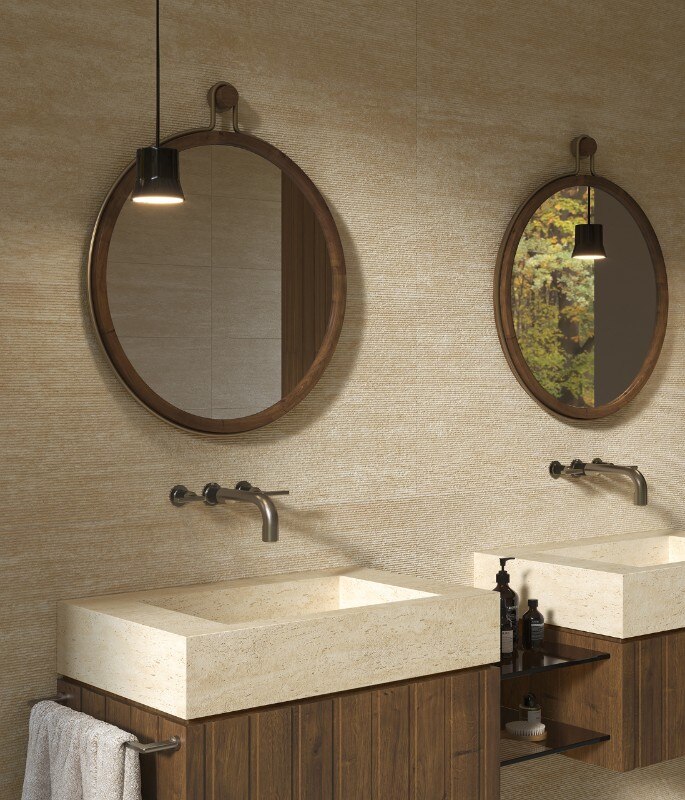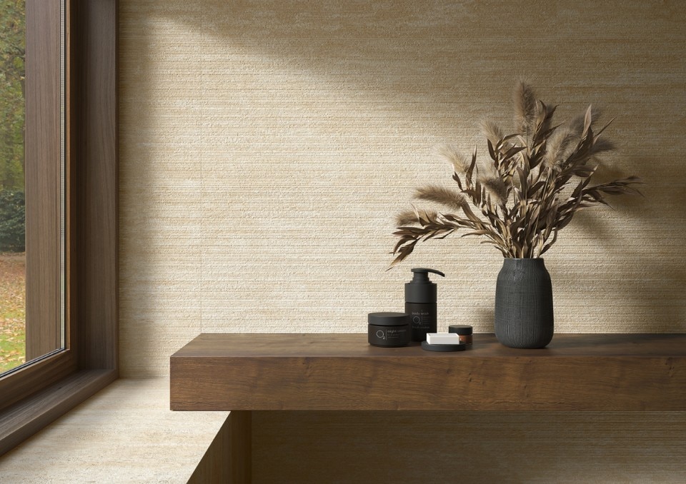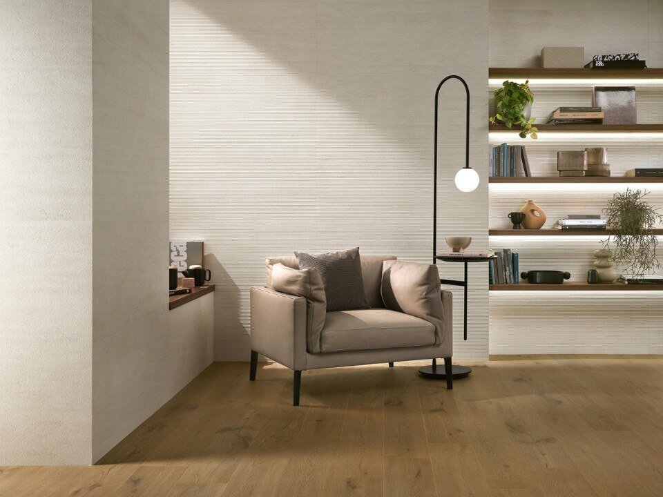 3D Crease si contraddistingue per una lavorazione geometrica, moderna e sofisticata che offre al marmo nuove opportunità architettoniche in una veste più contemporanea. L’effetto tridimensionale appare e scompare a seconda dell’illuminazione e del verso di posa, creando interessanti chiaroscuri da lontano, mentre da vicino la texture lievemente bocciardata rende la superficie realistica e scultorea. Field presenta un fondo con una lieve struttura tridimensionale e una finitura matte che rendono questa superficie discreta ed elegante, quindi perfetta per la posa a parete. La tecnica di smaltatura all’avanguardia utilizzata per la sua realizzazione fa sì che la superficie sia piacevole al tatto. La finitura Field può essere utilizzata da sola come rivestimento per le pareti, donando all’ambiente una forte personalità, o abbinata al pavimento coordinato di altre collezioni di Atlas Concorde. 3D Reed ha un rilievo più materico, irregolare e naturale, interrotto dalle imperfezioni dell’incisione manuale: riproduce il tocco artigianale e l’effetto ottenuto a seconda della durezza del materiale d’ispirazione. È una soluzione duttile che permette all’architetto di esprimere la sua creatività: il verso di posa e l’illuminazione dell’ambiente influiscono in maniera decisiva sulla resa finale consentendo di creare molteplici effetti. La posa in verticale delle lastre, in particolare, data la natura del rilievo, nasconde completamente le fughe.