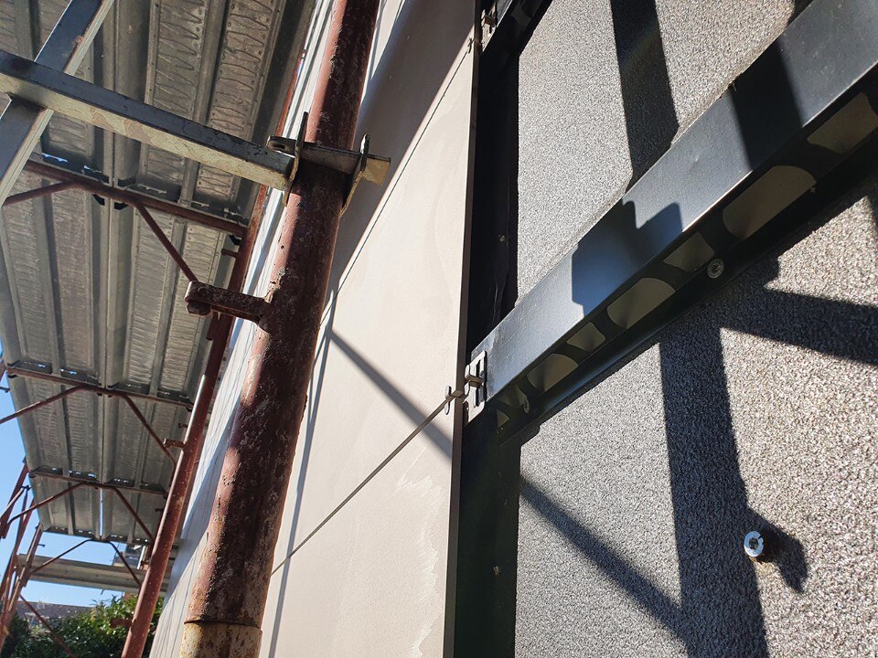 Un ulteriore vantaggio apportato dal sistema è la modalità di posa completamente a secco: Isotec Parete Black si posa su tutti i supporti mediante ancoraggio meccanico (tassellatura), senza limitazioni derivanti dalle basse temperature o condizioni metereologiche non ottimali. Questo ha permesso di effettuare la posa anche nei mesi invernali, senza interruzioni. Inoltre, la conformazione perimetrale del pannello a battenti contrapposti guida e semplifica ulteriormente la posa che risulta, una volta ultimata, perfettamente continua e priva di ponti termici. I punti di giunzione orizzontale fra i pannelli vengono sigillati, in fase di realizzazione, con l’apposito nastro butilico.