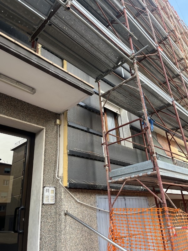 Elevata efficienza energetica, design moderno ed elegante, elevata protezione al fuoco e durabilità nel tempo: sono questi gli obiettivi raggiunti dallo Studio Associato di Architettura Pellegriti, che si è occupato della ristrutturazione dell’involucro di un condominio a Mestre risalente agli anni Settanta, sostanzialmente privo di isolamento. L’edificio si articola su cinque piani fuori terra e presenta una struttura originaria a telaio in calcestruzzo, murature di tamponamento a cassetta, tipica dell’edilizia di quel periodo, costituita da uno strato di mattoni forati e mattoni a vista, oltre ad alcune parti delle facciate finite ad intonaco. L’assenza di isolamento termico collocava l’edificio in un’onerosa ed inefficiente classe energetica F. L’architetto Pellegriti ha scelto soluzioni di elevata qualità prestazionale, tecnica ed estetica: facciate ventilate, realizzate con il sistema Isotec Parete Black, con migliorata reazione al fuoco.
