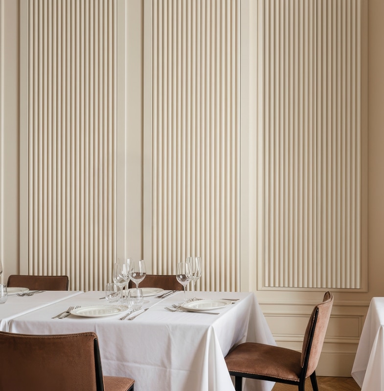 L’intervento sul suono passa anche attraverso il colore e la materia. Le superfici non sono neutre, ma partecipano attivamente alla costruzione dell’ambiente: tonalità calde e profonde, palette più leggere e desaturate, cromie naturali o accenti più marcati permettono di calibrare non solo l’atmosfera visiva, ma anche quella percettiva. In questo senso, il progetto acustico si avvicina sempre più a quello d’interni, lavorando per stratificazioni e relazioni piuttosto che per elementi isolati.