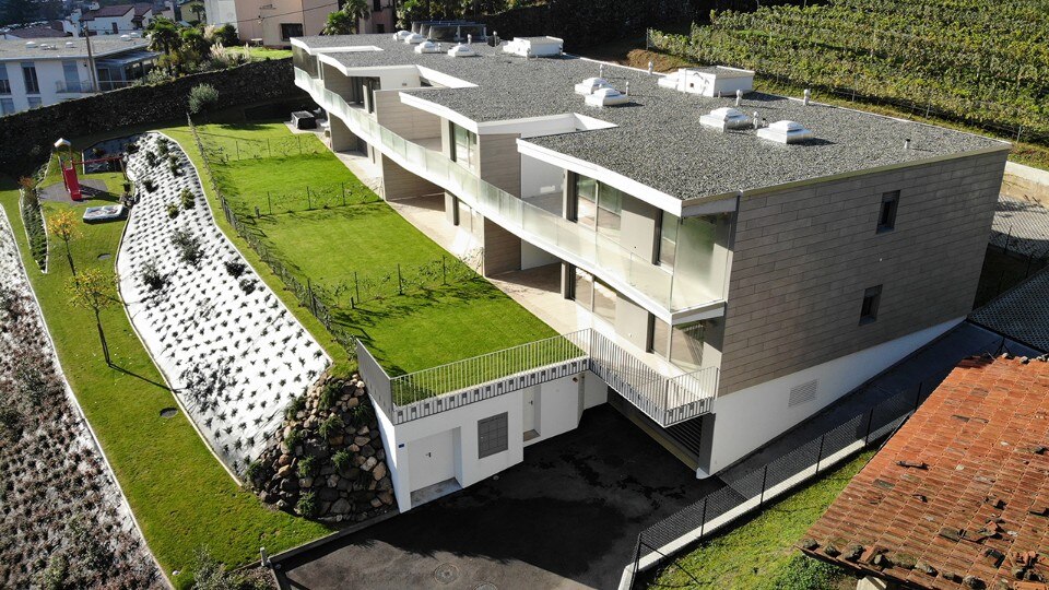 Il complesso residenziale nel Canton Ticino è isolato con il sistema per facciate ventilate Isotec Parete prodotto da Brianza Plastica.