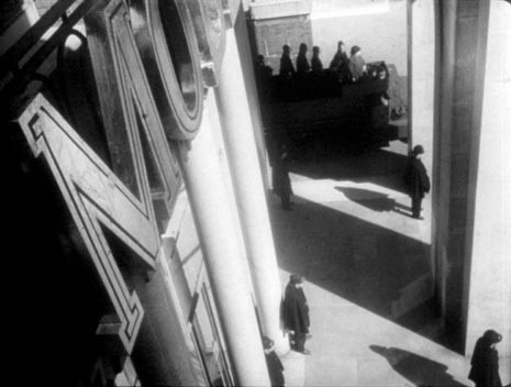 I fotogrammi successivi che aprono il film restituiscono una versione diurna della parte alta e una sequenza inversa che scende sino alla piazza e all’uscita del protagonista verso il lavoro.