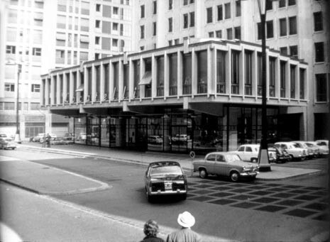 Curiosa l’ambientazione di alcuni fotogrammi, quelli dell’ingresso esterno dello studio e la ripresa fuori dalla finestra sui mezzi in partenza, girati nell’impluvium e nel portico del Palazzo della Triennale di Milano.