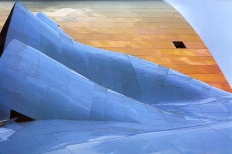 Experience Music Project, dettaglio del fronte est. Foto Lara Swimmer/Esto, Domus 829/00