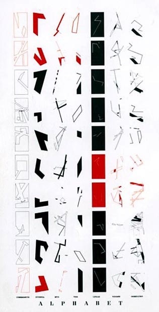 Museo Ebraico, Alfabeto, disegno di studio. Foto Domus 820/99