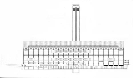 Tate Modern, sezione longitudinale. Foto Domus 828/00