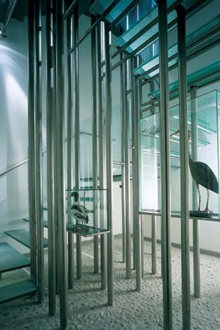 Nonostante queste derive concettuali, anzi forse a causa di queste, il progetto risponde sempre a una logica funzionale ineccepibile. I cristalli che rivestono le pareti permettono di inserire l’oggetto esposto in un insieme coinvolgente e, grazie a un sistema di binari mobili, hanno facile manutenzione. Le vetrine da attraversare permettono di guardare il fiume da un punto di vista più coinvolgente, quasi vivendolo dall’interno. I pannelli mobili delle esposizioni temporanee consentono una flessibilità che raramente si riscontra nelle piccole strutture museali. I pannelli traforati nella sala riunione, infine, non solo nascondono la sgradevole struttura edilizia, compromessa da un restauro precedente, ma servono anche a garantire l’acustica della sala.
